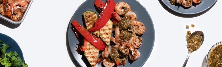 Add 1/2 of Kevin's Cilantro Lime Sauce to bowl. Lightly season both sides of the shrimp with salt and pepper and then toss shrimp in the sauce.