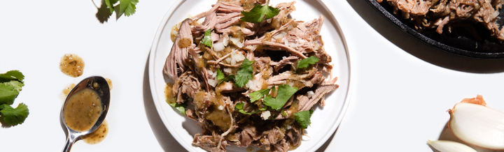 Place pork into your slow cooker with Kevin’s Tomatillo Taco Sauce. If using a pressure cooker, cook on the “Meat/Stew” setting (this should take ~45 minutes). If using a slow cooker, cook on HIGH for 7 hours or on LOW for 9 hours.
