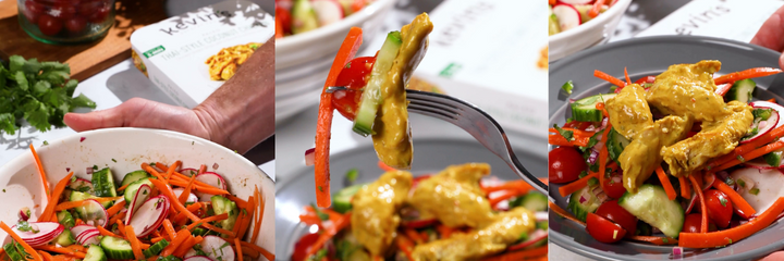 Top the salad mix with Kevin's Thai-Style Coconut Chicken and enjoy!