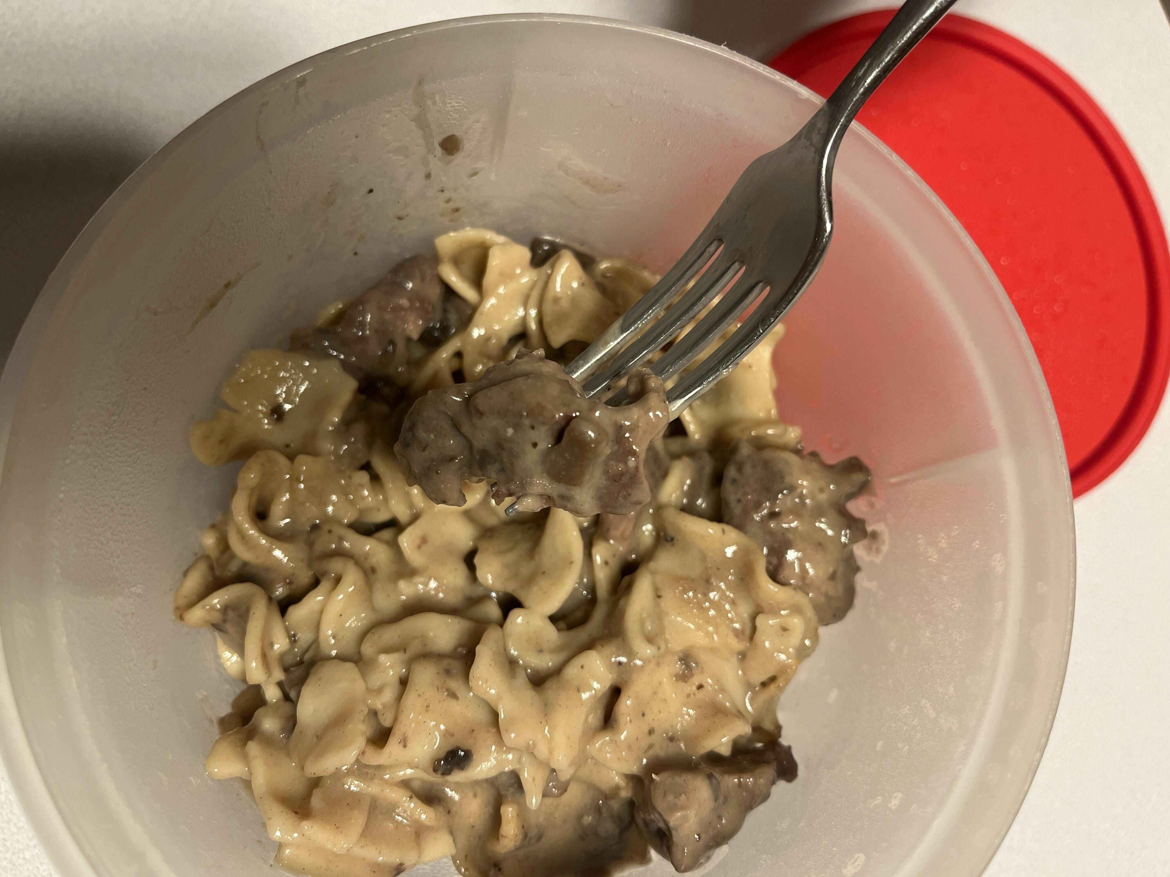 Stroganoff Sauce (Top Sirloin Beef Strips, Mushrooms, Water, Coconut Milk [Coconut Cream, Water], Onion, Clarified Butter [Milk], Chablis Wine, Chicken Stock [Chicken Stock, Salt], Chicken Fat, Yeast Extract, Dehydrated Roasted Garlic, Tapioca Starch, Xanthan Gum, Dehydrated Mushroom, Black Pepper, Spice), Cauliflower Pasta (Water, Cauliflower Powder, Potato Starch, Tapioca Starch, Whole Egg, Egg White, Xanthan Gum, Salt, Konjac).